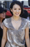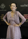 《最爱》受访现场-章子怡淡紫摺边蕾丝套装
