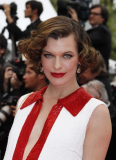 《征服》首映礼,米拉·乔沃维奇(Prada红白绣珠管…